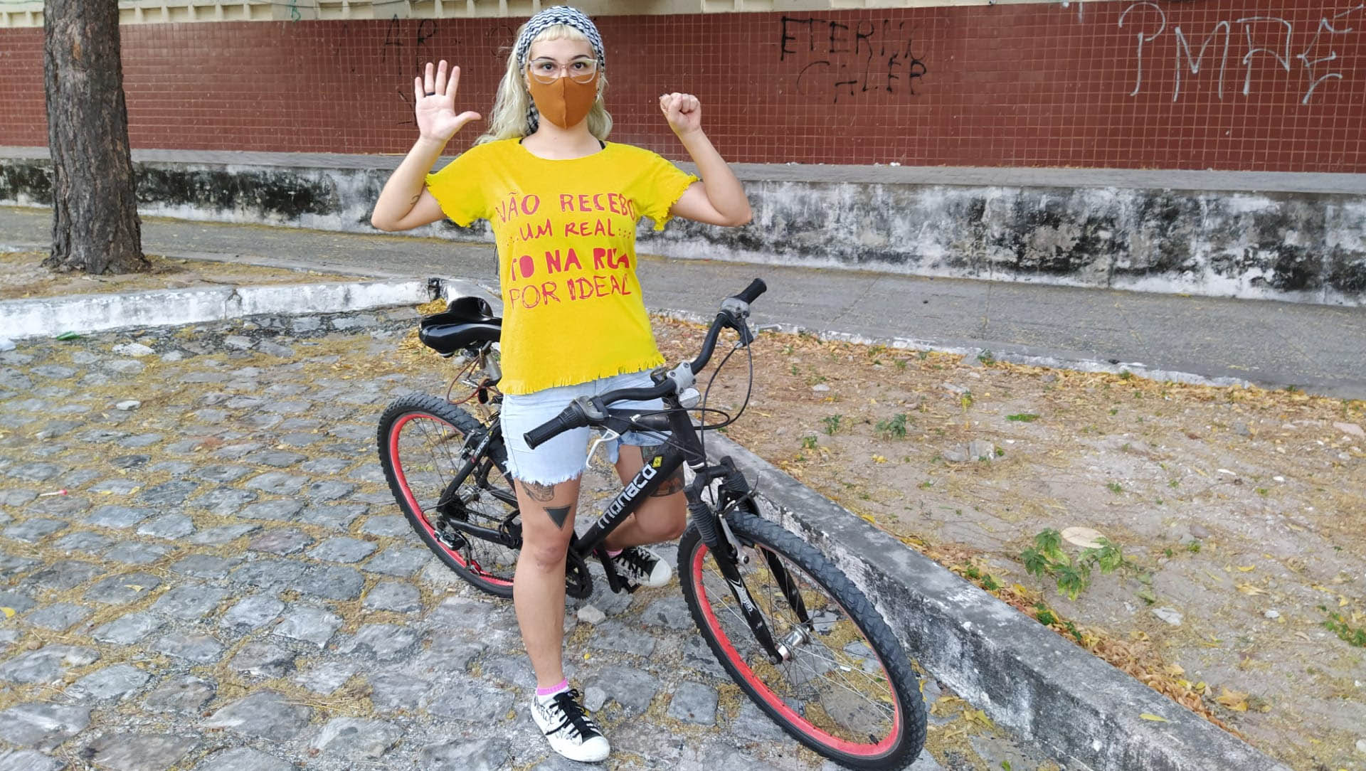 A jovem poetisa, de 24 anos, vice-candidata a prefeita pelo PSOL, tem uma bicicleta como sua principal forma de locomoção para eventos de campanha. Isso caracteriza a candidatura popular do partido; Yasmin é mais uma entre os 12 milhões de desempregados no Brasil e tem o auxílio emergencial como a sua renda neste período de pandemia.