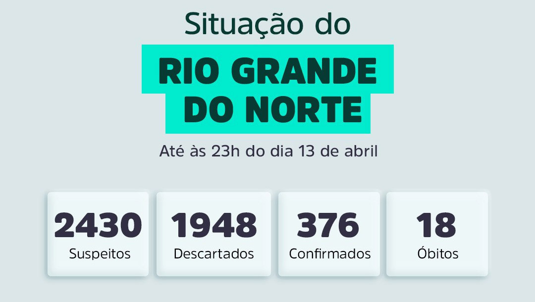 De acordo com o novo boletim da Sesap, a cidade registra 49,1 casos para cada 100 mil habitantes; Mossoró vem em segundo lugar com com 26,9 casos para 100mil/hab; O RN chegou a 376 casos positivos e 18 mortes causada pela Covid-19