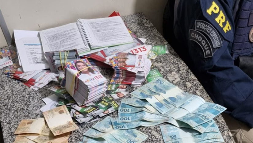 PRF prende na BR 304 casal com dinheiro, santinhos e nomes possíveis beneficiados