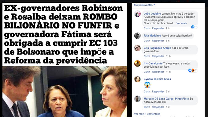 Confira as datadas dos saques realizados pelo Governo Rosalba e pelo Governo Robinson e se a atual governadora não fizer a reforma na Previdência, fica sem certidão para o Estado receber recursos federais