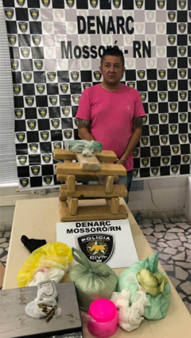Araponga é preso com 18 kg de maconha e 5 kg de cocaína em Mossoró