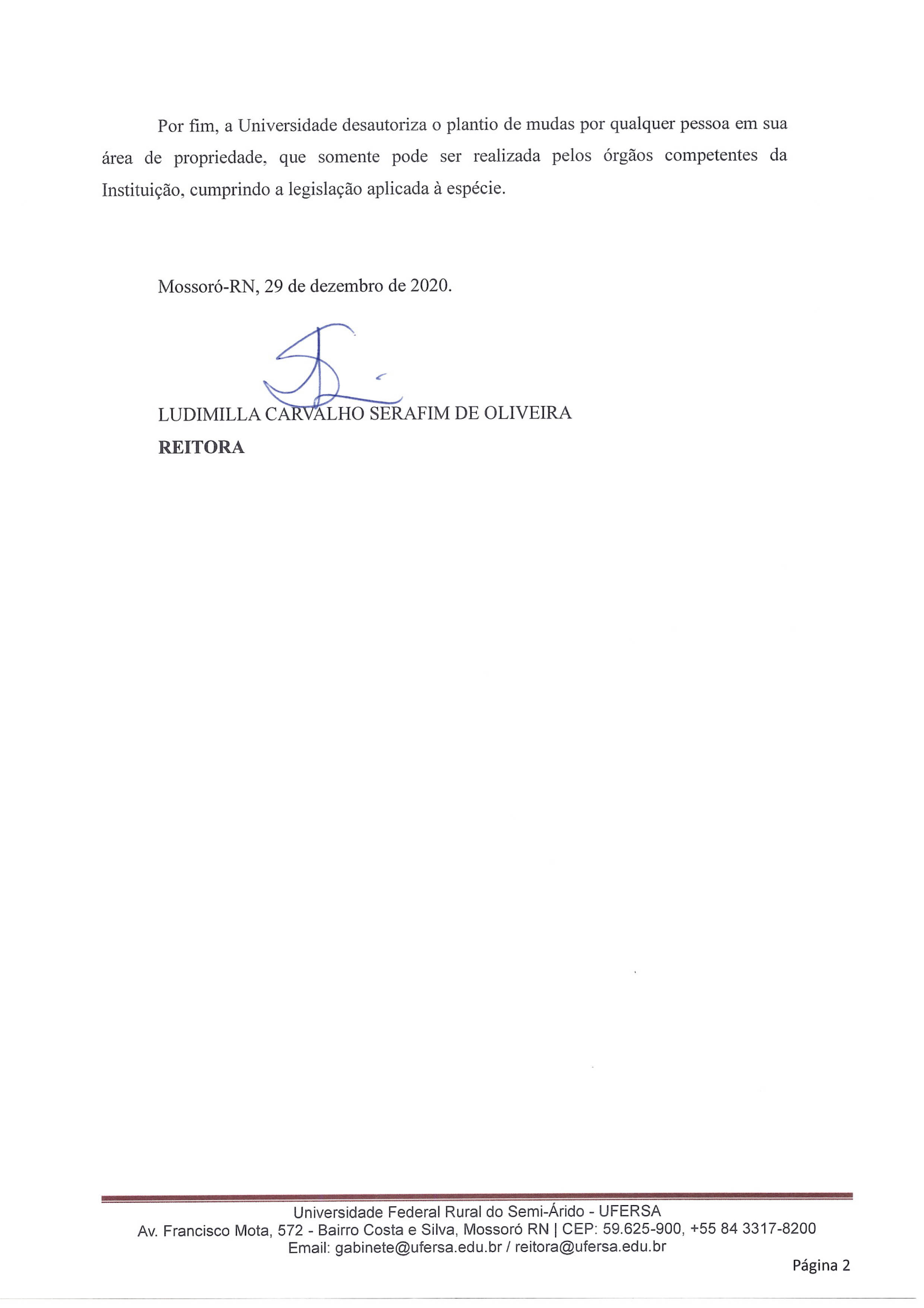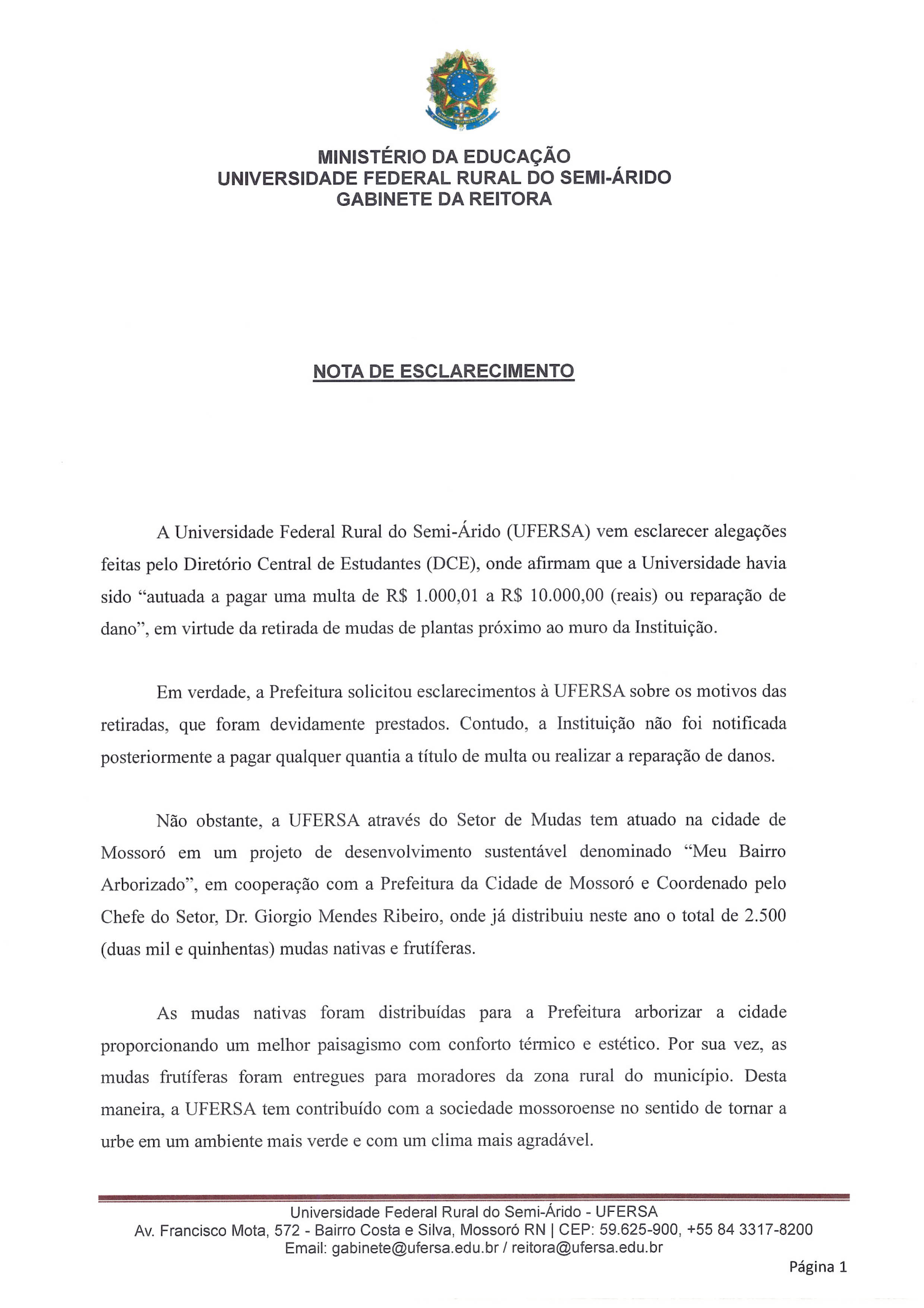 Por meio de nota de esclarecimento, a reitora da Universidade Federal Rural do Semi-Árido (Ufersa), afirmou que a Instituição não recebeu qualquer atuação para pagamento de multa ou reparação de danos.