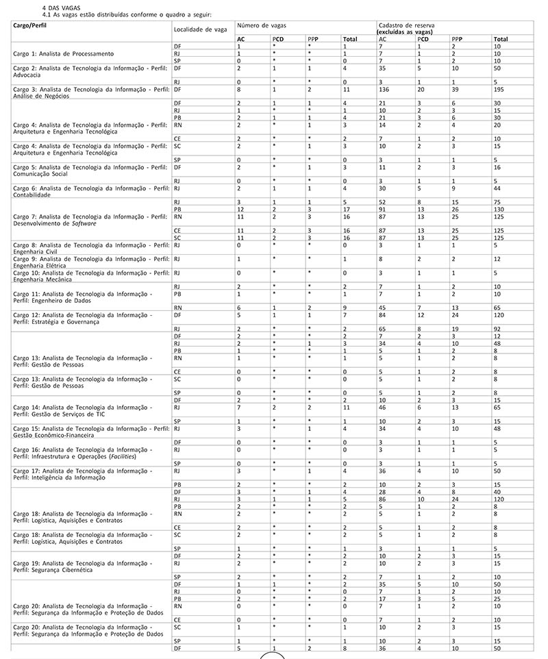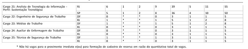Veja abaixo o quadro de vagas disponíveis para cada estado.