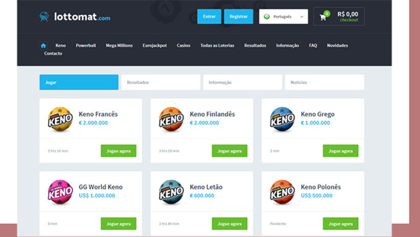 Com tantas opções de Keno certamente você encontrar algum com premiações mais atrativas. A Lottomat é uma loteria online de extrema confiança que oferece ótimos recursos e opções para apostas em loteria, vale muito a pena conferir tudo que o site tem a oferecer.