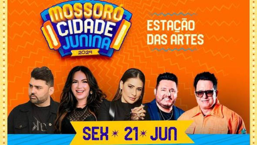 A programação do São João de Mossoró segue nesta sexta-feira (21). No polo principal, a Estação das Artes Elizeu Ventania, os shows serão voltados especialmente para quem curte música sertaneja.