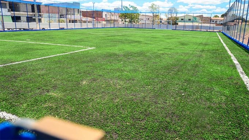 A arena conta ainda com piso intertravado, alambrados telados, iluminação de LED, vestiários, depósito e banheiro adaptado.