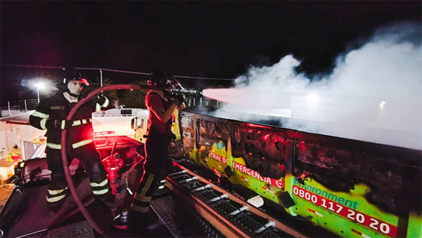 A guarnição foi acionada por volta das 23h36 desta quinta-feira (13), para a empresa Ambipar, localizada no Alto de São Manoel. Aparentemente, segundo registrado pelas câmeras de segurança do local, o incêndio foi iniciado por combustão espontânea, devido aos materiais que havia dentro da caçamba. Os bombeiros só conseguiram controlar completamente as chamas por volta das 4h37 desta sexta-feira (14). A caçamba ficou parcialmente destruída. Não houve vítimas.
